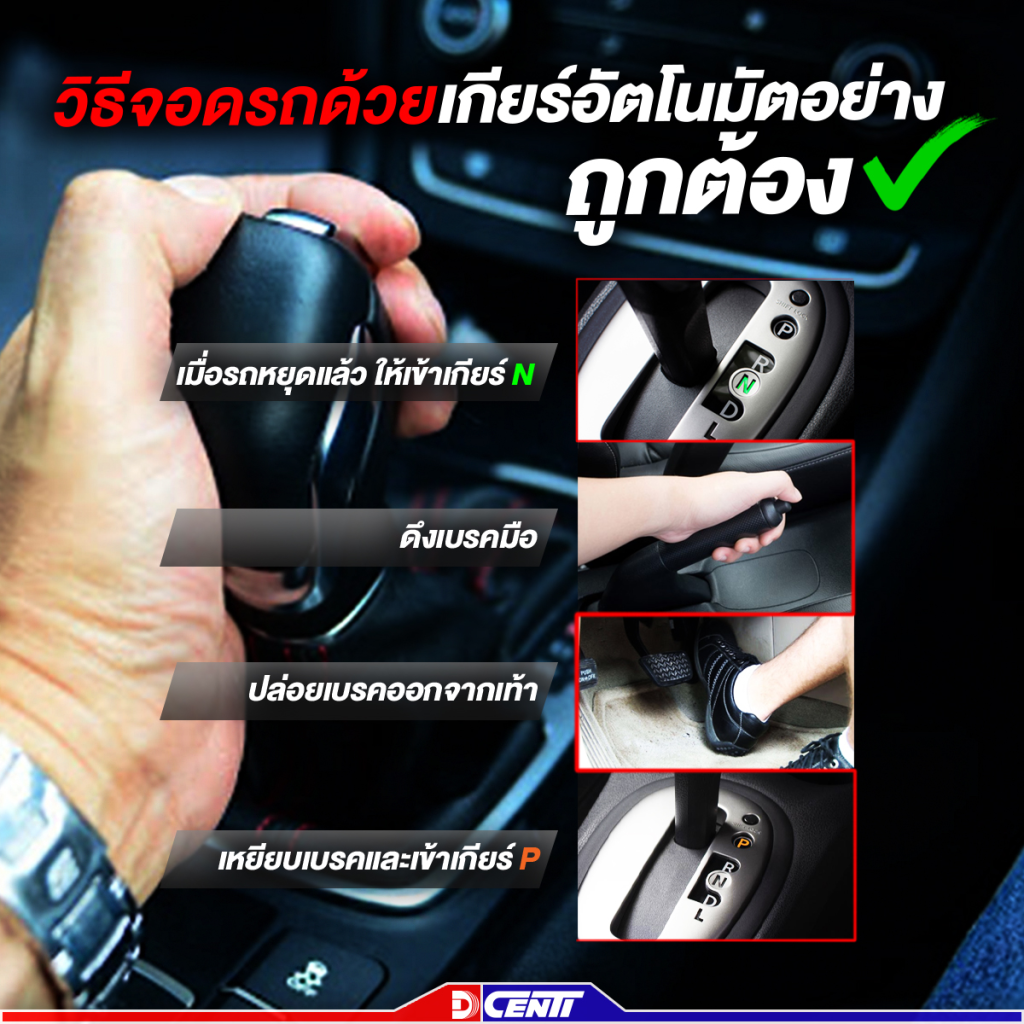 1. เมื่อหยุดรถแล้วให้เข้าเกียร์ N